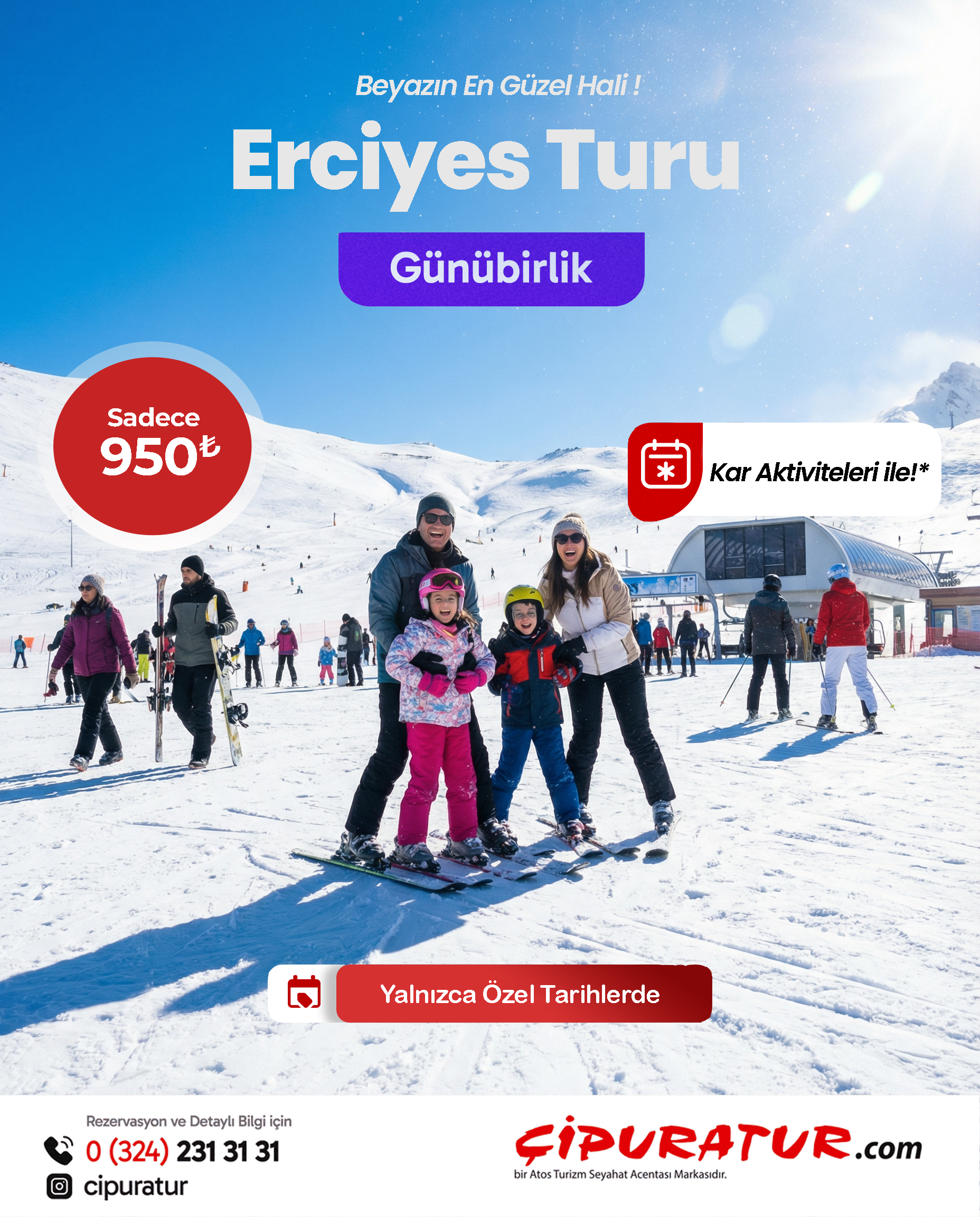 Kayseri’nin simgesi ve Türkiye’nin en önemli kış turizm merkezlerinden biri olan Erciyes Kayak Merkezi’ne varışımızın ardından misafirlerimize gün boyu değerlendirebilecekleri serbest zaman veriyoruz. Dileyen misafirlerimiz kayak, snowboard ve kızak aktivitelerine katılabilir, dileyenler teleferikle zirveye çıkarak eşsiz manzaranın keyfini sürebilir. Kayak yapmayı tercih etmeyen misafirlerimiz için tesis çevresinde yürüyüş yapma, kafelerde vakit geçirme ve dağ manzarası eşliğinde fotoğraf çekme imkânı bulunmaktadır. Gün içerisinde rehberimiz, ekipman kiralama ve pist kullanımı konusunda misafirlerimize yardımcı olacaktır. (Kayak ekipmanları, ski-pass ve özel ders ücretleri tur ücretine dahil değildir.*)