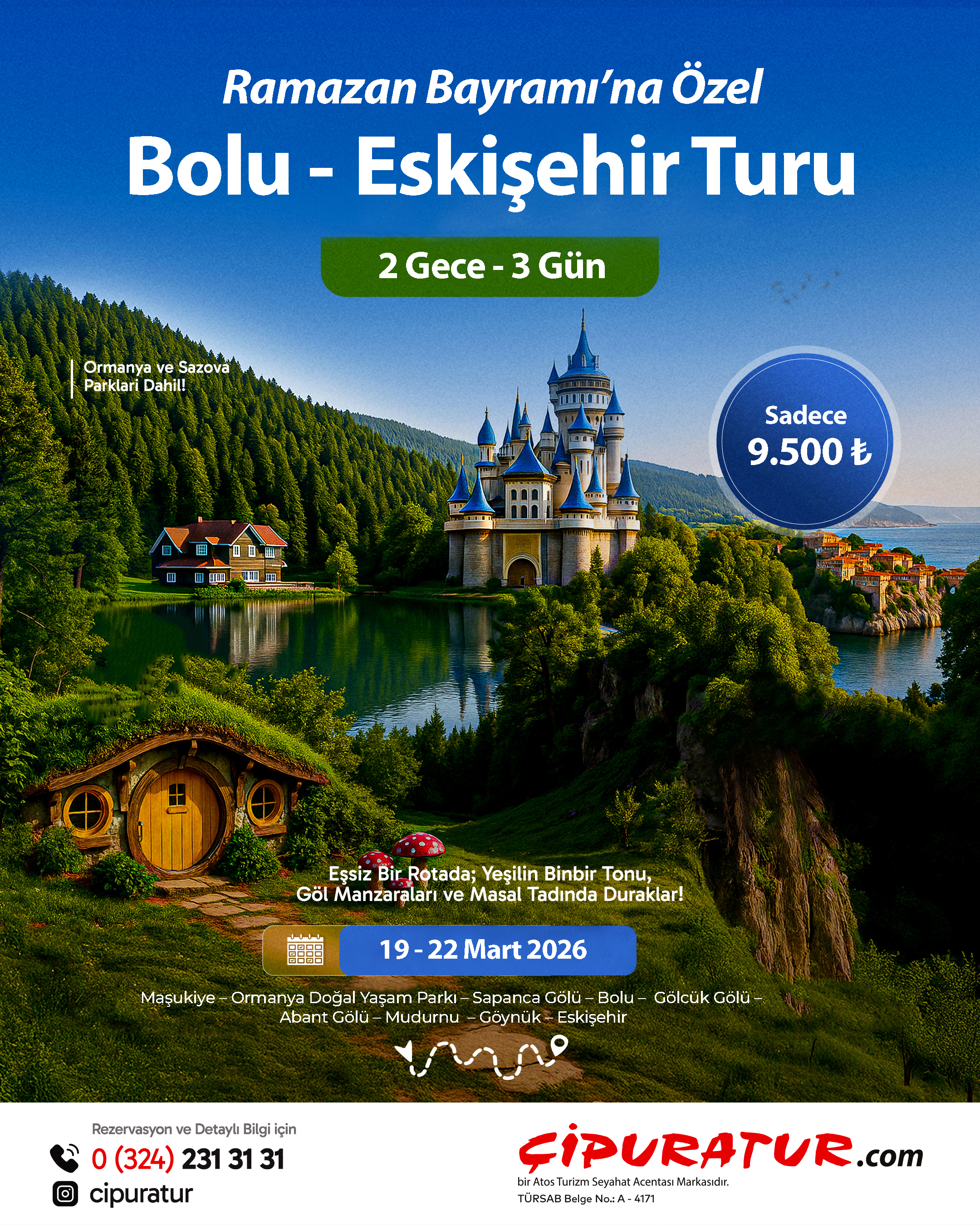 - Bolu ve Eskişehir’de 2 gece konaklama